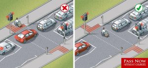 Pedestrian Crossings Zebra crossing no one waiting When you see the crossing check the interior mirror. Look from left to right of the crossing on approach. Centralise the car between the zig-zag road markings. Maintain but be prepared to reduce speed. Continue to scan the crossing for any activity. Once you